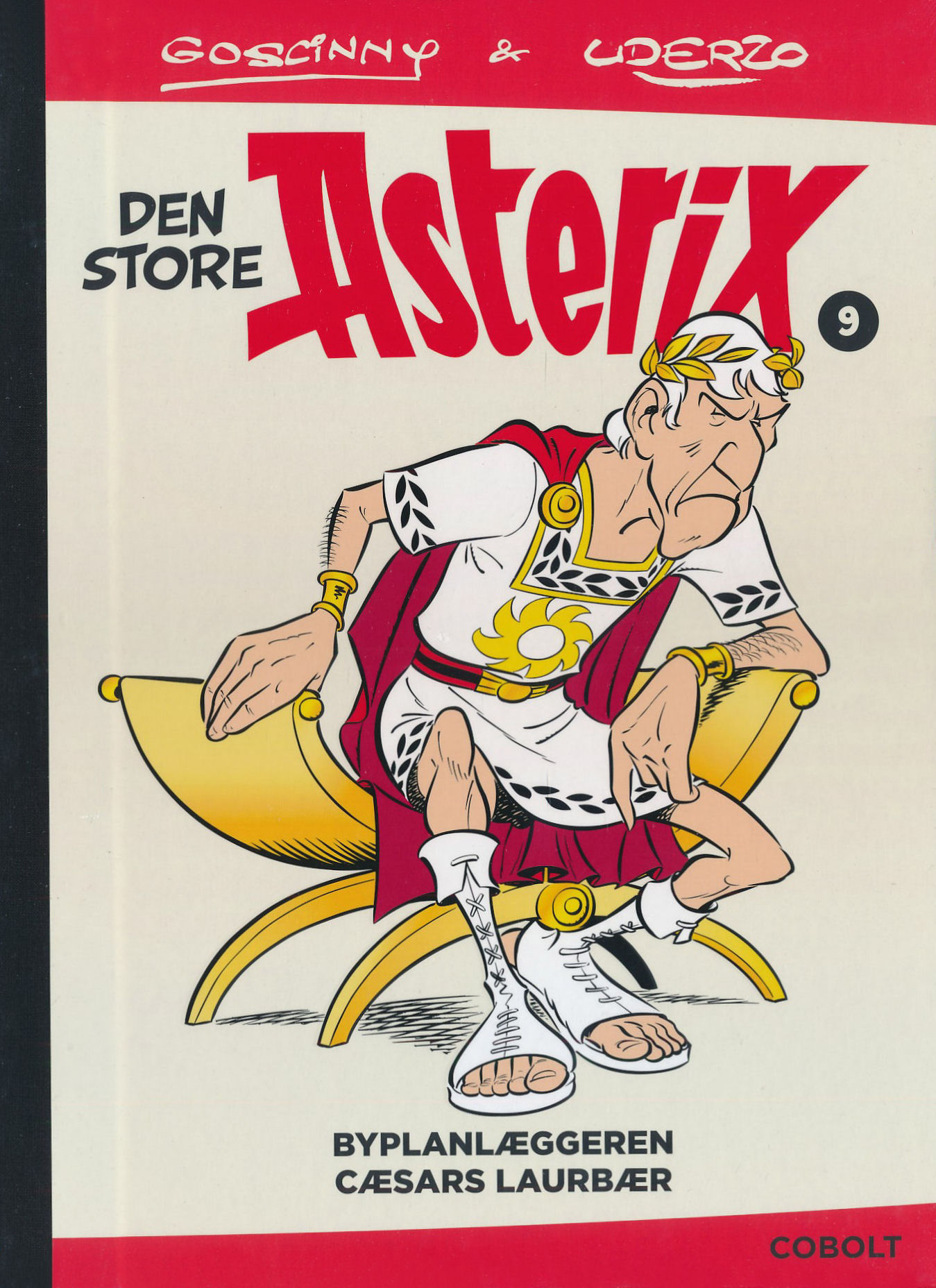 Den store Asterix 9 indeholder de to klassiske historier Byplanlæggeren og Cæsars laurbær samt et omfattende og rigt illustreret ekstramateriale på 60 sider om, hvordan Goscinny og Uderzo skabte tegneserien, sjove detaljer fra serien, persongalleriet, livet i Romerriget og meget mere. Asterix-historierne bringes i den originale rækkefølge, som Goscinny og Uderzo skabte dem. Om Byplanlæggeren Cæsar indser, at han ikke med magt får de gæve gallere i landsbyen højt mod nord til at overgive sig. I stedet vil han tvinge dem til at acceptere den romerske civilisation ved at rydde den omgivende skov og opføre en romersk by. Til at gennemføre den storslåede plan hyrer han arkitekten Designius og iværksætter en stor reklamekampagne, der skal lokke romere til at bosætte sig højt mod nord i Urbanus-byen. Det lykkes Miraculix på udspekuleret vis at forhindre rydningen af skoven – men da gallerne indser, at det kommer til at gå ud over slaverne, må de i stedet prøve at få det bedste ud af situationen. Ingen har imidlertid tænkt på, at de romerske tilflyttere er overmåde begejstret for “de vilde barbarer” … Om Cæsars laurbær Under en eksalteret middag hos Godemines bror, Homøopatix, i Lutetia ender Majestix i et gevaldigt skænderi med sin svoger – og kommer til at love ham noget praktisk taget umuligt: At han vil servere en middagsret krydret med selveste Cæsars laurbærkrans hjemme i landsbyen! Asterix påtager sig modstræbende sammen med Obelix at rejse til Rom for at få fat på laurbærkransen. Men hvordan pokker kommer man ind i Cæsars enorme palads – og hvordan finder man laurbærkransen derinde? Måske ved at sælge sig selv som slave eller involvere sig med Roms underverden?