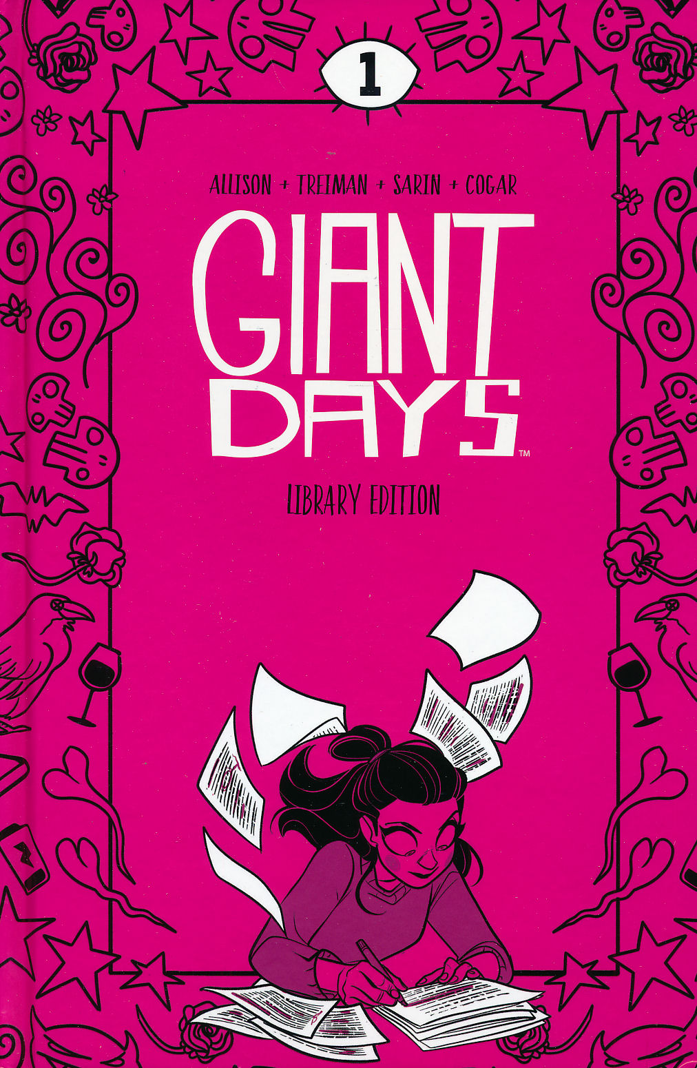 The school year is just beginning at Sheffield University, jam-packed with new classes, new professors, new places to explore...not to mention new clubs, new cliques, and new shenanigans, too. For first years Daisy, Esther, and Susan, they've got new friends on lock, forming a tight bond from their very first days as next-dorm neighbors. But learning to navigate life as brand new (almost) adults isn't as easy as it looks, between old nemeses popping up, academic struggles, and new crushes on the horizon. It's a good thing these three have each other to help survive Hall Balls, bantering lads, and drama vortexes (vortices?)! The Giant Days Library Edition Volume 1, written by John Allison (Wicked Things, Steeple) and illustrated by Lissa Treiman (Minötar) and Max Sarin (Harley Quinn: The Animated Series: The Eat. Bang! Kill Tour) collects the first eight issues of the Eisner Award-winning and Harvey Award-nominated series, along with an issue of the original webcomic and extras, all in a deluxe hardcover.