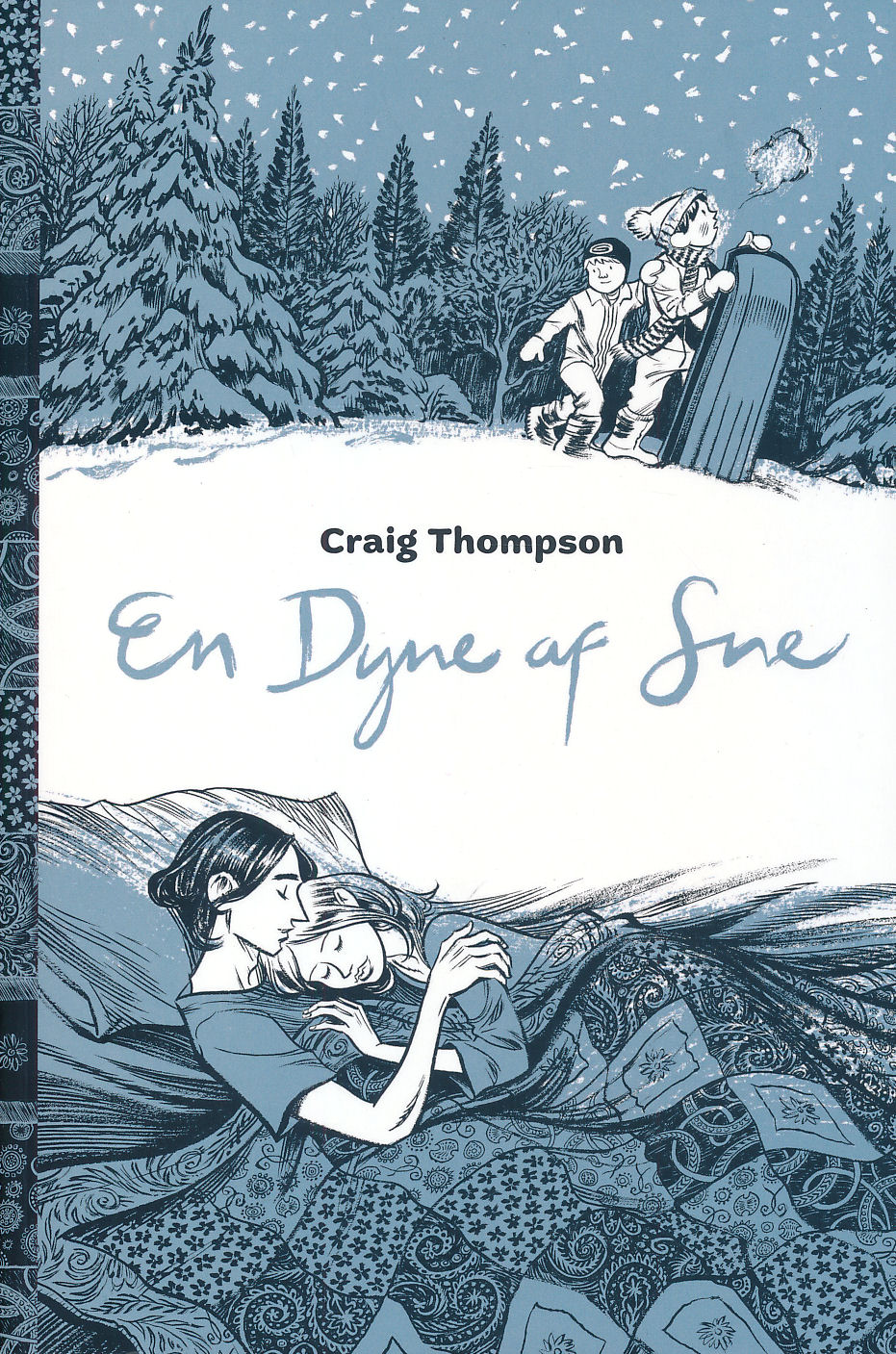 “En dyne af sne” er amerikaneren Craig Thompsons selvbiografiske fortælling om sin opvækst i en kristen familie i staten Wisconsin. Hudløst ærligt beretter han om sin tro og tvivl og især om mødet med Raina og den kærlighed, der er så forunderligt og skræmmende – den første. Craig Thompson maler med hele følelsregistret og efterlader læseren med et farverigt og mønstret billedtæppe indhyllet i en dyne af sne.