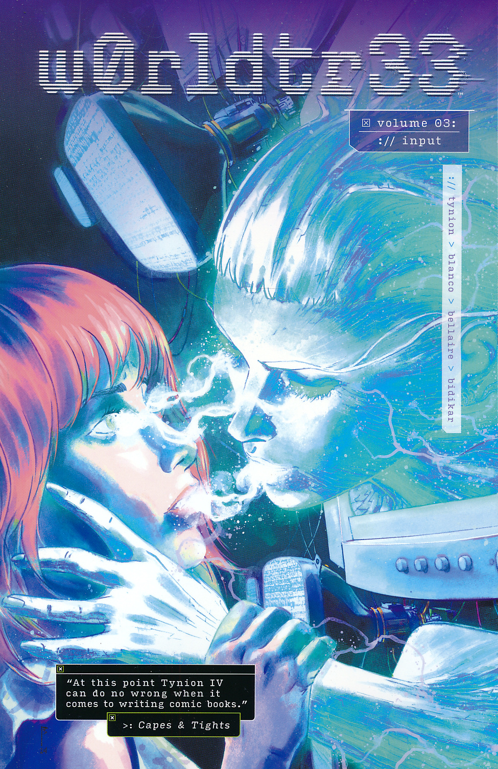 Collects issues #12-16. Before she was the Undernet’s remorseless assassin, PH34R was a little girl named Sammi, who just wanted to know what her big brother and his hacker friends were doing online all day… Fifty years later, the planet is barely hospitable. The Undernet has won. Ellison Lane believes he finally has all the pieces to give humanity another shot at a future. But a terrible angel stands in his way—an angel with tattoos all over her body, and a decades-long grudge against the w0rldtr33 gang. Multiple Eisner award-winner JAMES TYNION IV (The Department of Truth, Something is Killing the Children) and acclaimed artist FERNANDO BLANCO (Detective Comics) finally reveal the long-awaited story behind W0RLDTR33’s iconic killer.