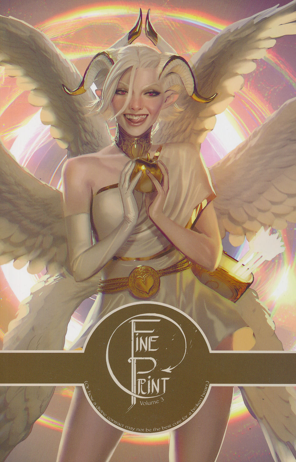 **In Volume 3 of FINE PRINT (aka "Why sex with gods is NOT a good idea"), we dive in deep and discover that not all winged things are angels, not all horned ones bring damnation, and surprise-surprise, no amount of unbridled bliss can actually solve your problems. ** Like any painkiller, bliss only takes you so far. This is a lesson that unlucky-in-love Lauren Thomas is going to have to learn the hard way, despite the aid of some of the underworld's foremost incubi. Even in Lauren's unique position - having divine entities at your romantic beck and call - wrestling with the past is no one's idea of a good time. Not that things are any easier for the immortals in Lauren's orbit; whether you execute contracts or shoot heart-shaped arrows, interpersonal dynamics always end up complicating things. Strap in, everyone – this is where it gets miserable.