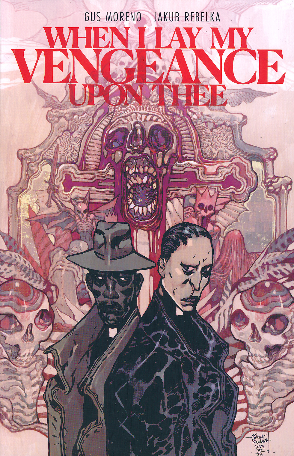 Collects When I Lay My Vengeance Upon Thee #1-5. Tarantino meets The Exorcist in this thrilling descent into Hell itself from rising star author Gus Moreno, whose debut novel was awarded “Best Book of 2021” by NPR. Father Barrera is a disgraced priest, haunted by his part in the tragic death of a child. As penance, he is exiled to the remote South American island town of Puerto Cristina to apprentice under the enigmatic Father Stygian, controversial exorcist. Exorcists are normally trained in the Vatican, but Stygian has his own way of handling demons... methods that predate even the Church. As Barrera seeks to unlock the mysteries of Stygian's strange practices, he uncovers an island rife with evil and supernatural phenomena. What do these possessions mean, and how are they connected to a mysterious hospital patient, one who's been in a coma for nearly half a century without aging a single day? Rising star author Gus Moreno, whose debut novel This Thing Between Us was awarded a "Best Book of 2021" recognition by NPR, joins forces with visionary artist Jakub Rebelka (Cyberpunk) for a mesmerizing and thrilling descent into Hell itself.