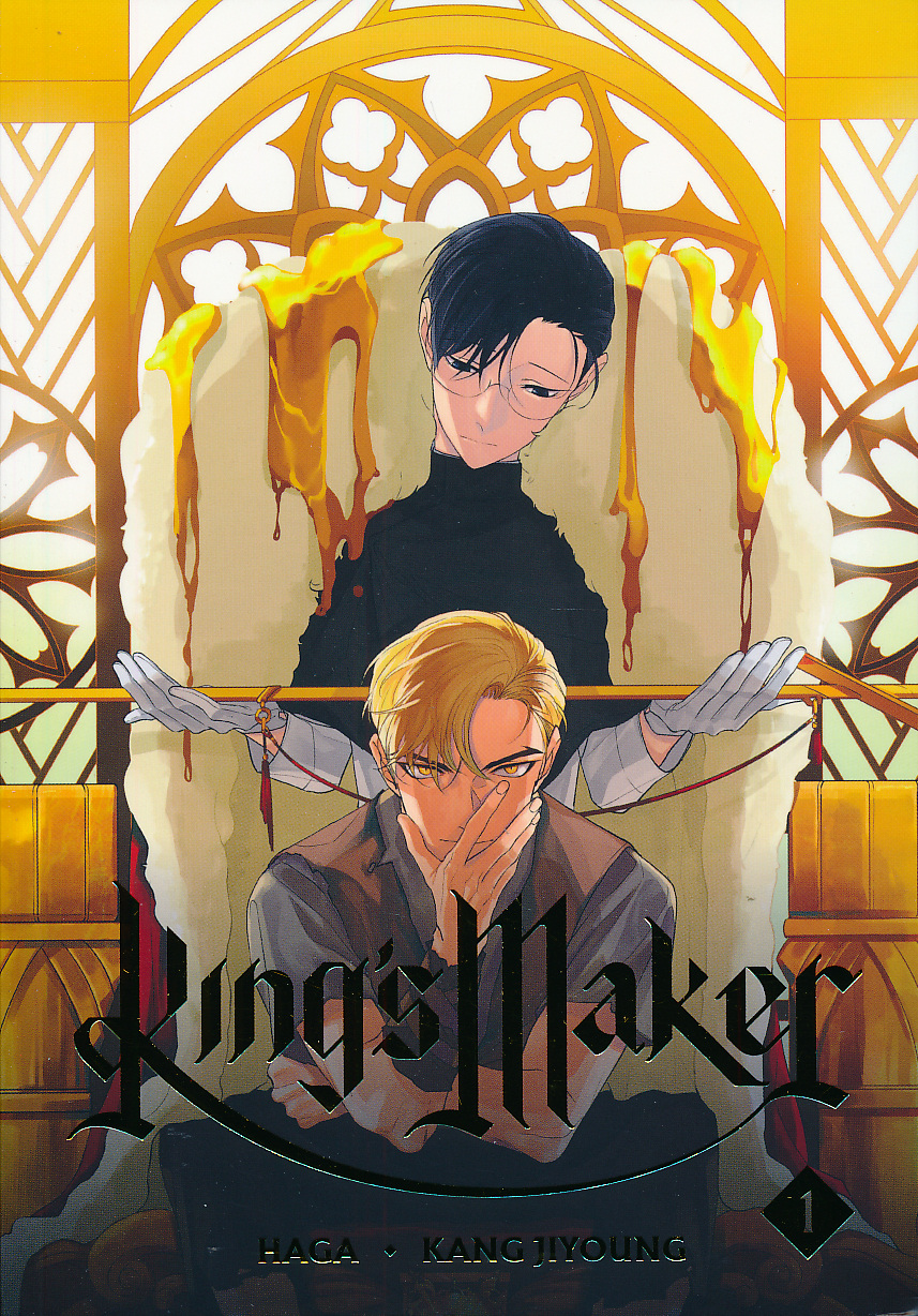 A rebellious prince, once thought dead. A noble’s son, held captive by a deviant king. A bold plot that could change the fate of a kingdom. This first volume of the hit BL manhwa by Haga and Kang Jiyoung includes a fold-out poster featuring iconic art of Wolfgang and Soohyuk! When Wolfgang is forced to move into the royal palace and take up his rightful seat as the fourth prince of Goldenleonard, he catches the eye of Soohyuk Shin, the son of the minister of foreign affairs. Soohyuk, forced to serve as one of the king’s beloved “sovereign darlings,” is looking for someone to play the leading role in a daring scheme. So far, all the other princes have disappointed Soohyuk, but Wolfgang is different—and he might just be the key to overthrowing the king Volume 1 includes episodes 0-12 of the webcomic King's Maker. Story Locale:Goldenleonard, fantasy world