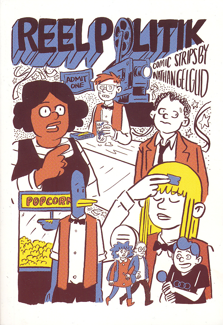 An absurdist comic strip satire of cinephilia in the attention economy A specter is haunting the cinema. A contrarian crew of small town theatre employees trade quips about directors, film criticism, and contemporary moviegoing, but underneath their banter and clashes with customers, an ideology begins to take shape. With the help of a dissatisfied cinephile and some witchy magic, the employees radicalize, take over the theatre, and seize the means of projection. What starts out as a workplace comedy simmers and then explodes into an absurdist Marxist-Leninist cinema-focused tract. The Reel Politik revolutionaries demand that we ditch the small screens in our pockets for the big ones in the theater as they take on streaming services, phone addiction, algorithms, phony democracy, and the conventions of moviegoing etiquette. Does that mean they hijack the Criterion Closet van? You bet it does. Cartoonist Nathan Gelgud both champions and lampoons the aspirations and failures of cinema and not a single sacred cinematic cow goes un-punched in this manifesto for revolution through film.