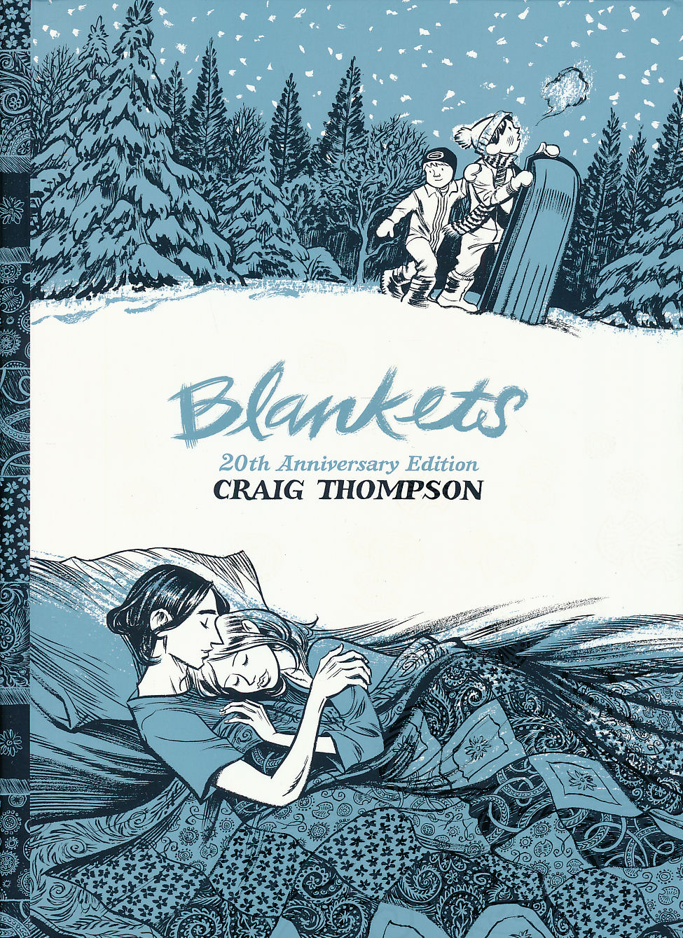 Blankets: 20th Anniversary Edition is the story of a young man coming of age and finding the confidence to express his creative voice. Craig Thompson's poignant graphic memoir plays out against the backdrop of a Midwestern winterscape: finely-hewn linework draws together a portrait of small town life, a rigorously fundamentalist Christian childhood, and a lonely, emotionally mixed-up adolescence. Under an engulfing blanket of snow, Craig and Raina fall in love at winter church camp, revealing to one another their struggles with faith and their dreams of escape. Over time though, their personal demons resurface and their relationship falls apart. It's a universal story, and Thompson's vibrant brushstrokes and unique page designs make the familiar heartbreaking all over again. This groundbreaking graphic novel, winner of two Eisner and three Harvey Awards, is an eloquent portrait of adolescent yearning; first love (and first heartache); faith in crisis; and the process of moving beyond all of that. Beautifully rendered in pen and ink, Thompson has created a love story that lasts.