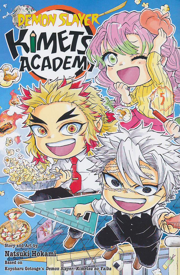Spring is here, and life is in full bloom at Kimetsu Academy! A poorly placed cut (on a pizza) gets Muichiro into a world of trouble with his brother, while Rengoku's dad gets wrapped up a real bear of a battle. Meanwhile, Uzui finds himself critiquing the art of Kimetsu Academy's creepiest resident! And that's not even mentioning a life-or-death fishing trip with Gyomei!