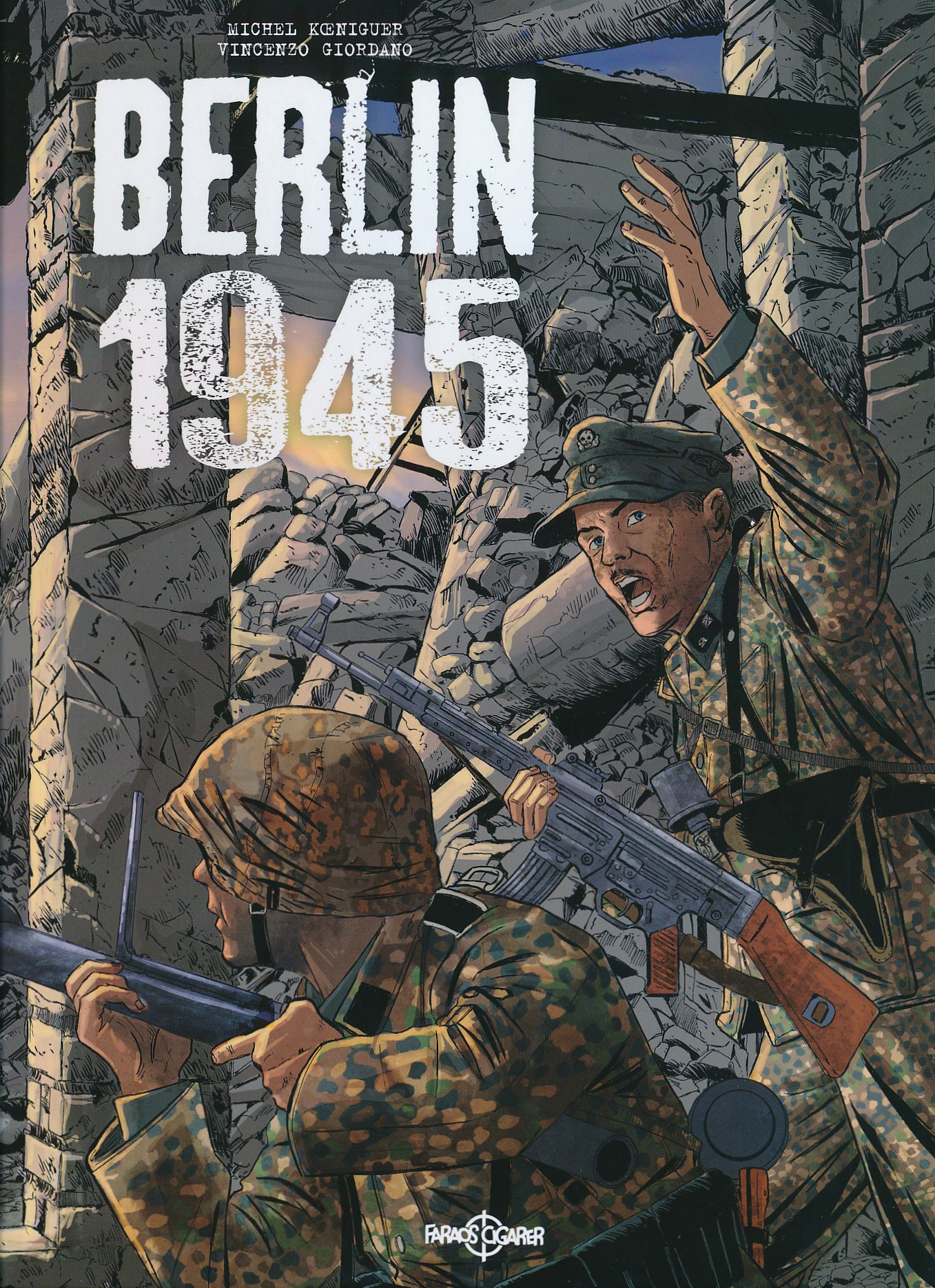 I Berlin 1945 skildrer Michel Koeniguer de sidste dage af krigen set gennem en gruppe franske Waffen-SS-soldaters øjne. Byens forsvar bestod på dette tidspunkt næsten udelukkende af udenlandske SS-enheder og Volksturm. Nogle af franskmændene havde meldt sig af ideologisk overbevisning, andre af opportunisme … men nu, i et Berlin på randen af undergang, har de ikke længere noget valg. Krigen er tabt, og de står over for en brutal skæbne: enten falder de for russernes kugler eller for en henrettelsespeloton i hjemlandet.