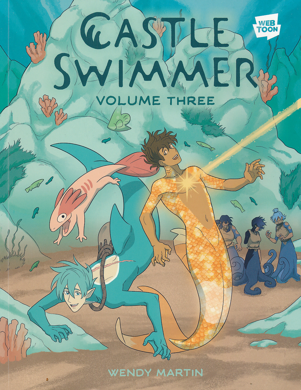 Kappa and Siren's adventurous journey into the vast ocean begins in this exciting third installment of the hit Webtoon series Castle Swimmer. After leaving Siren to recover from his wounds in the shark castle, Kappa heads out into the big wide ocean once more. Minutes into his newfound freedom, another prophecy intervenes, pulling him towards a giant demigod crab scuttling along the ocean floor. As Kappa tries to figure out why he is drawn towards this crab, he comes across three magic-wielding octopi with tragic pasts and uncovers more about his greater purpose as the Beacon. When Siren finally leaves the shark castle a month later, Kappa is long gone. Alone in the greater ocean, which he's only ever heard about, Siren quickly realizes that he's unequipped to fend for himself. After his supplies are stolen by thieves, Siren finds himself by luck in the company of a young fish and his mother and joins them on their travels. As they teach him to fight and tough it out in the wild, Siren begins searching for a cure to his curse.