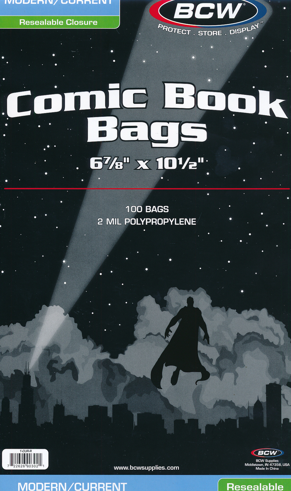 BCW Bags: Modern/Current Size - RESEALABLE (100pc) (PP).