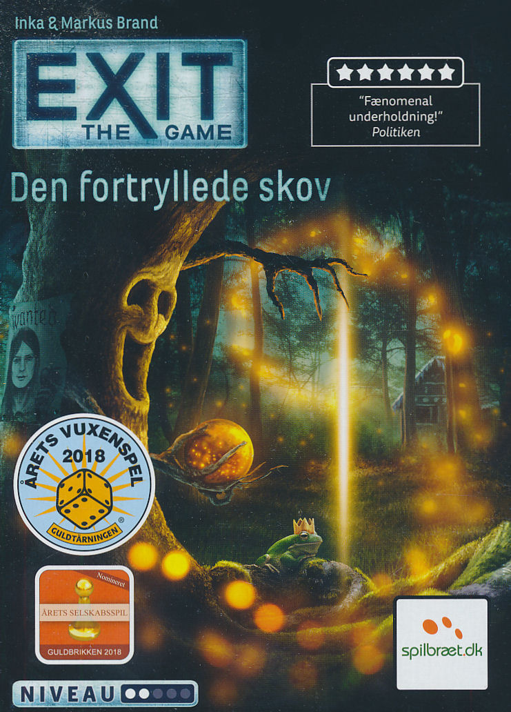 EXIT-spillene er escape rooms i en æske. I står over for en række gåder og mysterier, som I skal løse på tid, så I kan ‘undslippe’ det sted, hvori I er fanget. Hvert EXIT spil udgør en større udfordring, som tager 1-2 timer at løse for en gruppe spillere – og spillet er beregnet til kun at blive spillet en gang. Hver æske har sit eget tema fra den forladte, arktiske forskningsstation til det hjemsøgte slot til den (måske) øde ø. I Den Fortryllede Skov er i blevet fanget i en magisk skov, der er fyldt til randen med eventyrlig uhygge og et par talende dyr eller to. Kan I løse gåderne og slippe væk fra skoven i tide?