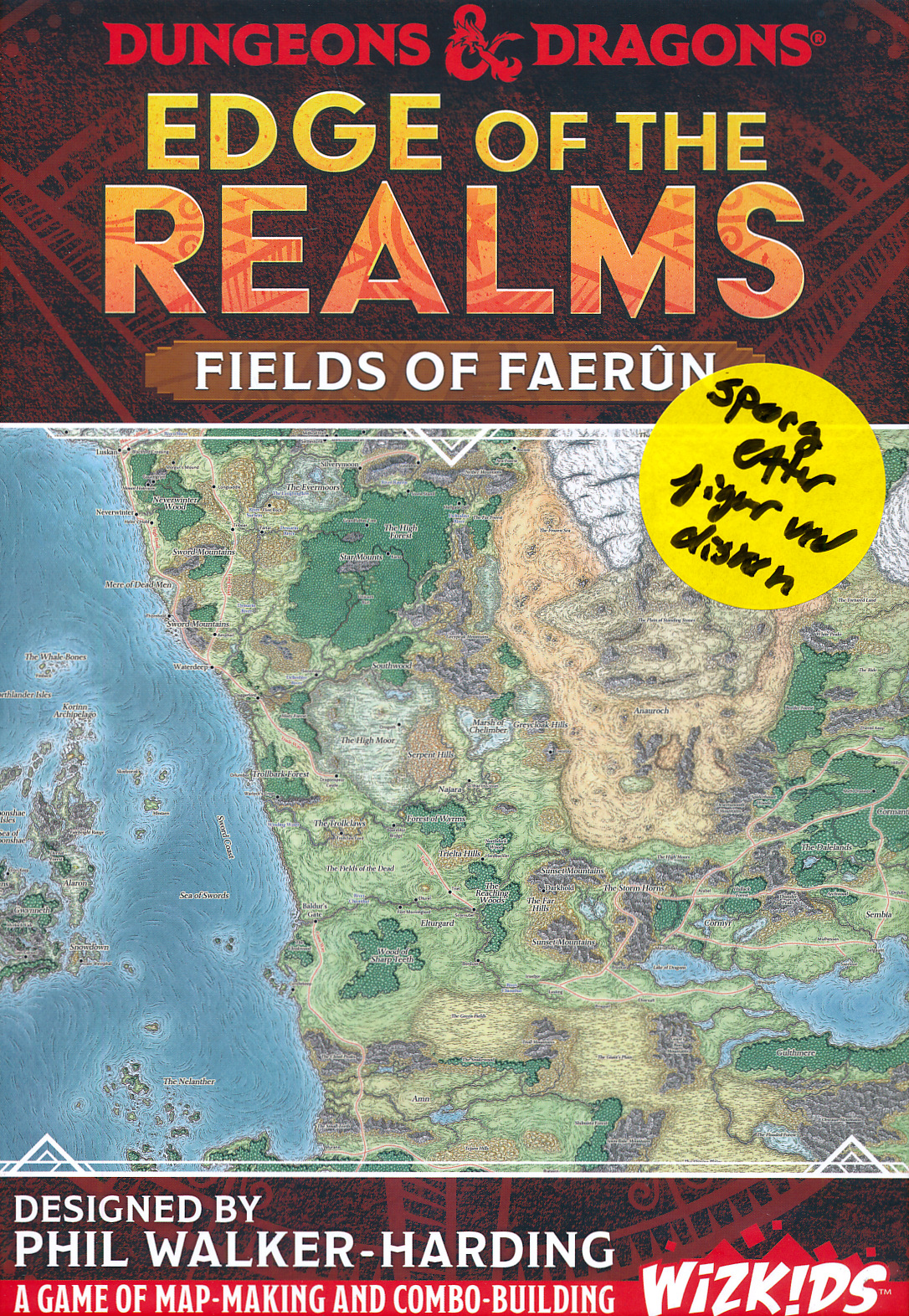 Edge of the Realms is from acclaimed designer Phil Walker-Harding, with original tile art from Gerralt Landman! Every adventure needs a good map! You are explorers in the Forgotten Realms. Reveal new terrain and magical places to prepare your adventurer`s journey. But think fast! The game speeds along quickly as everyone plays at the same time: Draw a Map card into your hand. Choose a Map card and place it facedown. Everyone reveals Map cards and add them to their maps. Check for Quest completion and score points. Pass your hand to the player on your left, and start again! Match up terrain, activate landmarks, visit cities, and fulfill quests. After 15 turns, you`ll have a completed map ready for adventure! The player with the most points will be crowned the greatest explorer in the Edge of the Realms! Components: 116 Map Cards, 5 Starting Cards, 1 Map Maker Card, 10 Quest Cards, 2 Area Cards, 5 Reference Cards, 50 Exploration Cubes, 4 Quest Tokens, 5 Adventurer Pawns, 1 Score Pad. Final components are subject to change